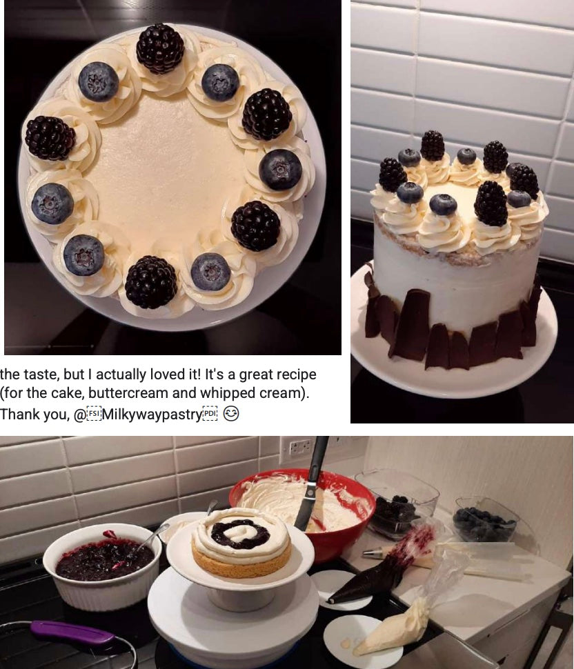 First time I use (and make) buttercream😊. I am not sureI have ever tasted it before too🤔. I have never made it because I thought I wouldn't like the taste, but I actually loved it! It's a great recipe(for the cake, buttercream and whipped cream).Thank you, Milkywaypastry